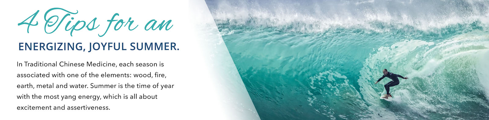 Balance your exercise with breath. Summer is the highest energy, highest movement time of year, including in terms of moving your body. TCM suggests getting a lot of exercise during the summertime. Along with running, biking, swimming, hiking or whatever your summer activity of choice is, incorporate some slower, more mindful movement to stay strong and healthy. Practicing yin or restorative yoga or choosing to meditate in stillness outside can be great for staying in tune with your bodies needs and cultivating mindfulness in all your activities.